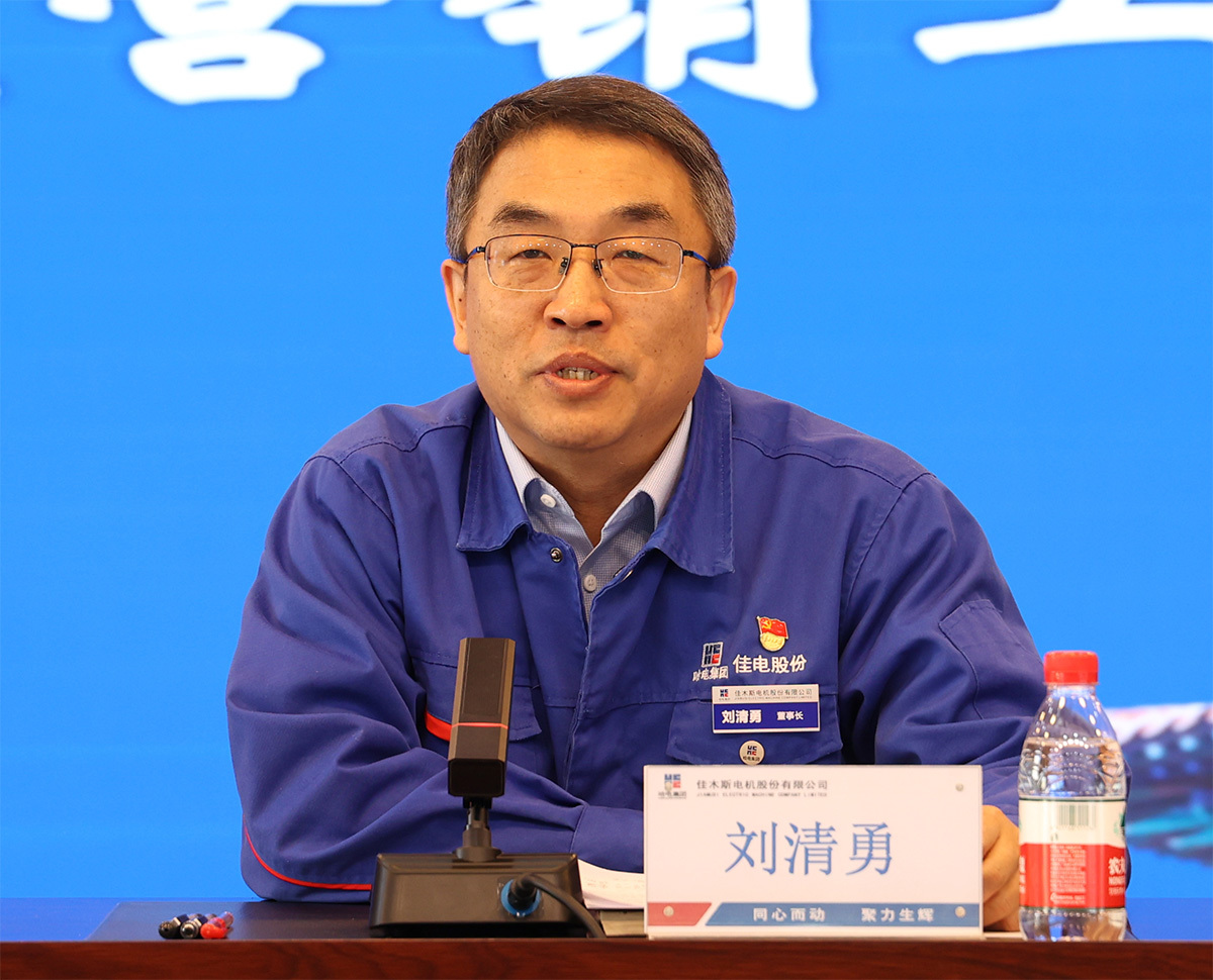 哈電集團黨委常委、副總經(jīng)理,佳電股份董事長劉清勇對公司2023年度營銷工作取得的成績給予了充分肯定。同時,根據(jù)行業(yè)新的發(fā)展形勢,圍繞“出征——開啟新征程,使命——激發(fā)新動力,能力——鑄就新業(yè)績”三個方面,與大家做了深入闡述和交流。強調(diào)要以“謀劃、精細、團結(jié)、溝通、敏感、奉獻”等方面為工作重點,聚焦“技術(shù)、質(zhì)量、服務(wù)”這個底層邏輯,始終秉持“以客戶為中心 為客戶創(chuàng)造價值”的理念,積極搶抓新的機遇,戰(zhàn)勝新的挑戰(zhàn),為加快“建設(shè)世界一流特種電機制造和服務(wù)企業(yè)”作出不懈努力。