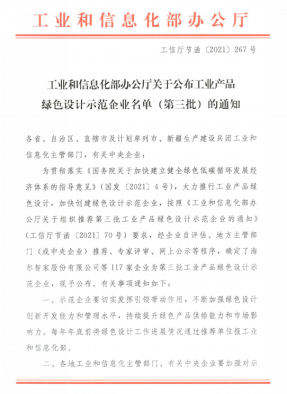 2020-2022年獲國(guó)家綠色產(chǎn)品設(shè)計(jì)目錄