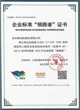 2020年至今,佳電股份研發(fā)的YBX4系列高效率隔爆型三相異步電動(dòng)機(jī)、YBX3系列高效率隔爆型三相異步電動(dòng)機(jī)、YE4系列高效率三相異步電動(dòng)機(jī)、YE3系列高效率三相異步電動(dòng)機(jī)、YBX3系列高效率高壓隔爆型三相異步電動(dòng)機(jī)、YFBX4系列高效率粉塵防爆三相異步電動(dòng)機(jī)、TBYC系列隔爆型永磁三相同步電動(dòng)機(jī)、TYC系列永磁三相同步電動(dòng)機(jī)、YJKK系列高效率高壓三相異步電動(dòng)機(jī)、YJKS系列高效率高壓三相異步電動(dòng)機(jī)、YJ系列高效率高壓三相異步電動(dòng)機(jī)等共18個(gè)系列產(chǎn)品獲得國(guó)家“綠色設(shè)計(jì)產(chǎn)品”稱號(hào)。T(B)YC系列(隔爆型)永磁三相同步電動(dòng)機(jī)技術(shù)條件(機(jī)座號(hào)80~400)、 YE5系列高效率三相異步電動(dòng)機(jī)技術(shù)條件(機(jī)座號(hào)80~355)等8個(gè)系列企業(yè)標(biāo)準(zhǔn)獲得國(guó)家級(jí)企業(yè)標(biāo)準(zhǔn)“領(lǐng)跑者”稱號(hào)。佳電股份是電動(dòng)機(jī)行業(yè)綠色產(chǎn)品、企業(yè)標(biāo)準(zhǔn)領(lǐng)跑者全面覆蓋的企業(yè),涵蓋了佳電股份主導(dǎo)的高低壓系列產(chǎn)品,進(jìn)一步保障綠色電動(dòng)機(jī)產(chǎn)品的市場(chǎng)供應(yīng)。
