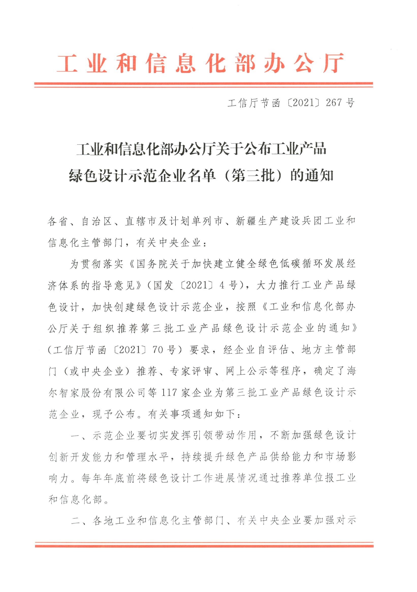 佳電股份積極強(qiáng)化綠色設(shè)計(jì)創(chuàng)新開發(fā)能力和管理水平,持續(xù)提升綠色產(chǎn)品供給能力和市場(chǎng)影響力,于2021年11月,被國(guó)家工業(yè)和信息化部評(píng)為國(guó)家級(jí)“綠色產(chǎn)品設(shè)計(jì)示范企業(yè)”,成為黑龍江省唯一一家入選第三批工業(yè)產(chǎn)品綠色設(shè)計(jì)示范企業(yè)。