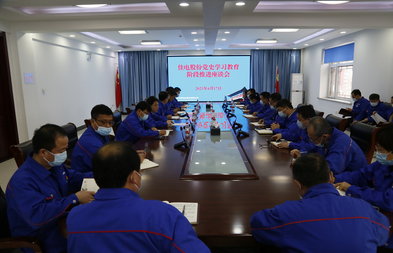 為進一步落實習近平總書記在黨史學習教育動員大會上的重要講話精神,貫徹集團公司黨委黨史學習教育各項具體部署要求,4月17日,佳電股份黨委召開黨史學習教育推進座談會。公司黨史學習教育領導小組組長、黨委書記、董事長劉清勇主持會議并講話。公司黨史學習教育領導小組副組長、黨委副書記劉漢成做黨史學習教育階段總結(jié)并就下一步工作進行安排。公司黨史學習教育領導小組成員、公司黨史學習教育辦公室成員和各基層單位黨政負責人參加會議。