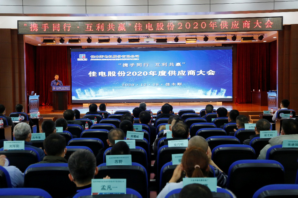 12月8日,佳電股份召開2020年度供應(yīng)商大會(huì)。公司領(lǐng)導(dǎo)班子及相關(guān)單位負(fù)責(zé)人參加會(huì)議。100余位來自全國各地的優(yōu)秀供應(yīng)商代表出席會(huì)議。副總經(jīng)濟(jì)師劉榮貴主持會(huì)議。