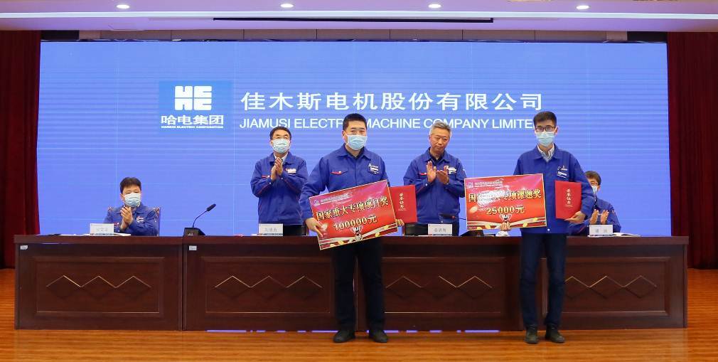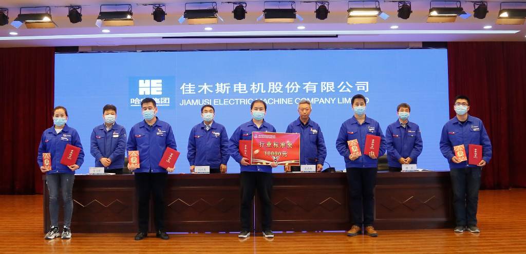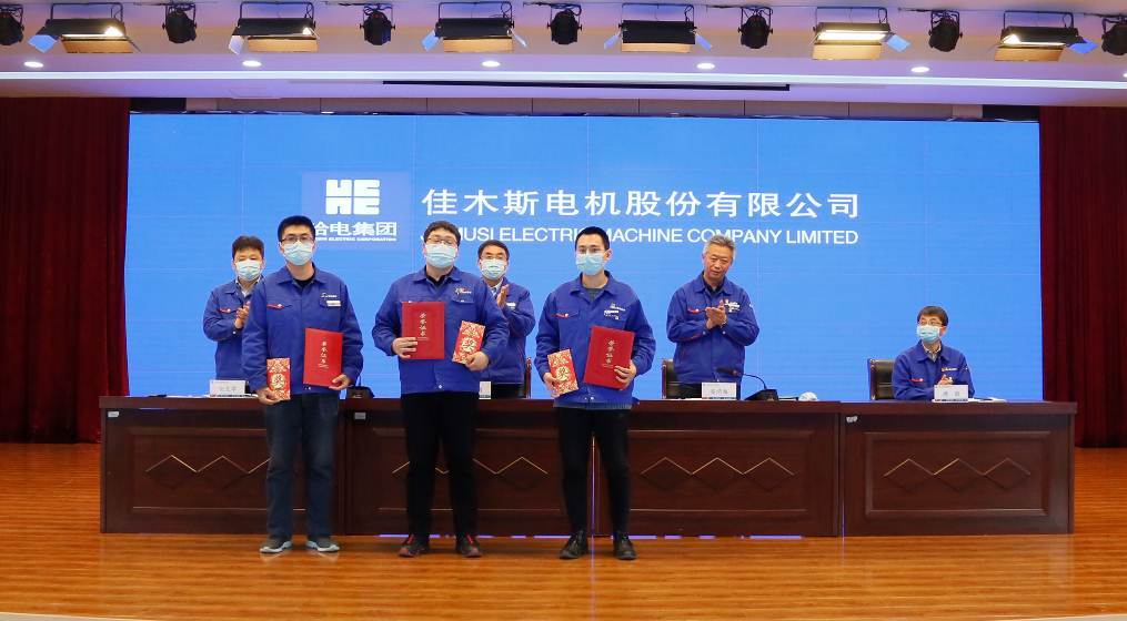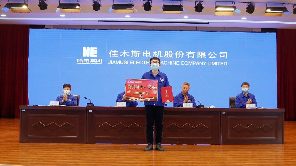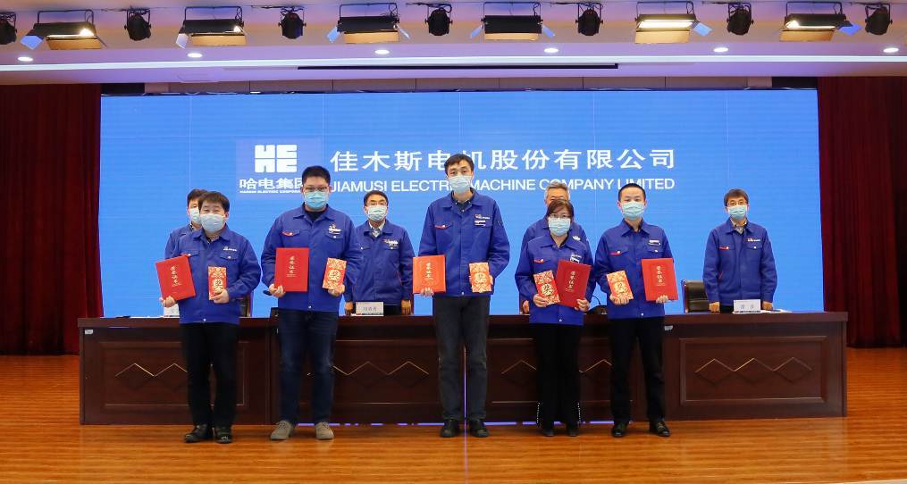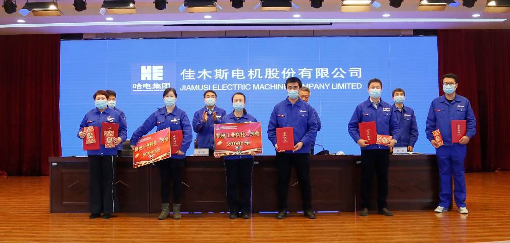 副總經(jīng)理安文舉宣讀了《哈爾濱電氣集團佳木斯電機股份有限公司關(guān)于2020年科技工作表彰獎勵的決定》,表彰了為公司科技事業(yè)做出突出貢獻的先進集體和先進個人,并為獲獎代表頒獎。