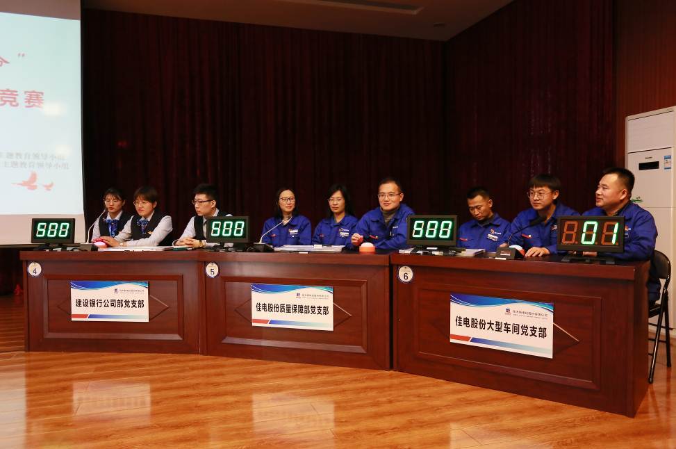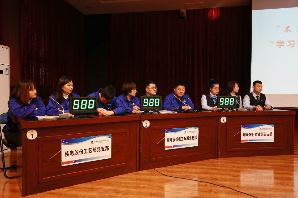 為深入學(xué)習(xí)習(xí)近平新時(shí)代中國(guó)特色社會(huì)主義思想和黨的十九屆四中全會(huì)精神,加深廣大黨員對(duì)黨的歷史、黨的基本理論、基本路線和基本方略的認(rèn)識(shí)和理解,鞏固和強(qiáng)化“不忘初心、牢記使命”主題教育取得成果,11月29日下午,哈電集團(tuán)佳木斯電機(jī)股份有限公司黨委(以下簡(jiǎn)稱“佳電股份黨委”)與中國(guó)建設(shè)銀行股份有限公司佳木斯分行黨委(以下簡(jiǎn)稱“建行佳木斯分行黨委”),在佳電股份會(huì)議室共同舉辦了“不忘初心、牢記使命”主題教育“學(xué)習(xí)強(qiáng)國(guó)杯”黨建知識(shí)競(jìng)賽。