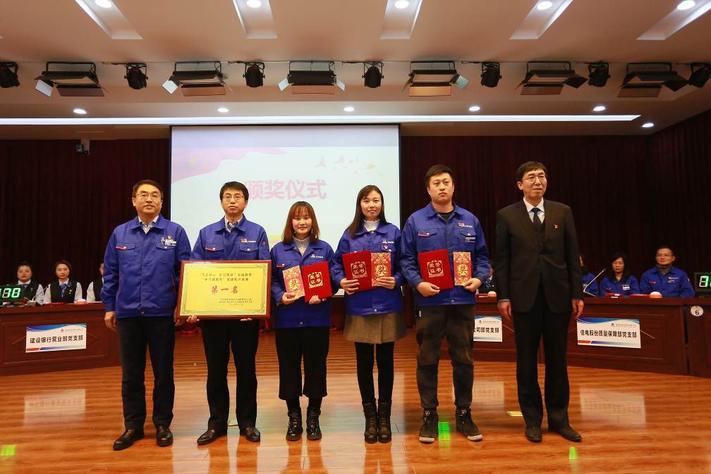 在四輪激烈的競(jìng)答后,工藝部黨支部代表隊(duì)以770分的成績(jī),贏得了本場(chǎng)比賽第1名,大型車間黨支部代表隊(duì)以760分的成績(jī),贏得了本場(chǎng)比賽第2名,質(zhì)量保障部黨支部代表隊(duì)以750分的成績(jī),贏得了本場(chǎng)比賽第3名,建設(shè)銀行公司部黨支部代表隊(duì)、電工車間黨支部代表隊(duì)、建設(shè)銀行營(yíng)業(yè)部黨支部代表隊(duì)分別榮獲4-6名。佳電股份黨委領(lǐng)導(dǎo)和建行佳木斯分行黨委領(lǐng)導(dǎo)分別為獲獎(jiǎng)人員頒發(fā)獎(jiǎng)牌和獎(jiǎng)品。