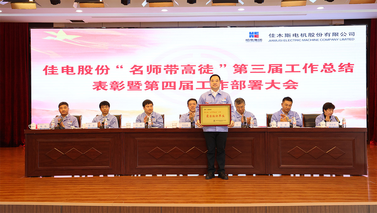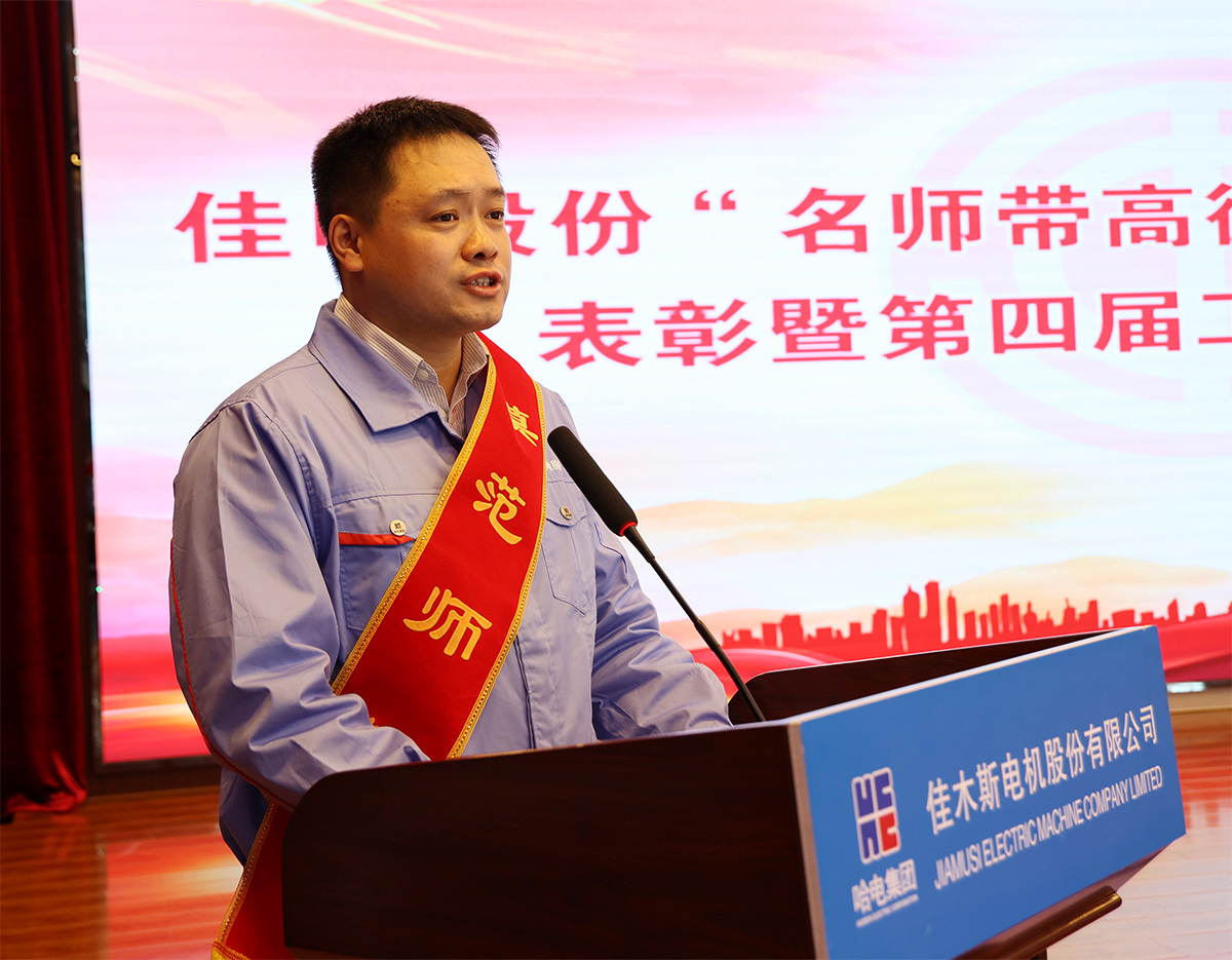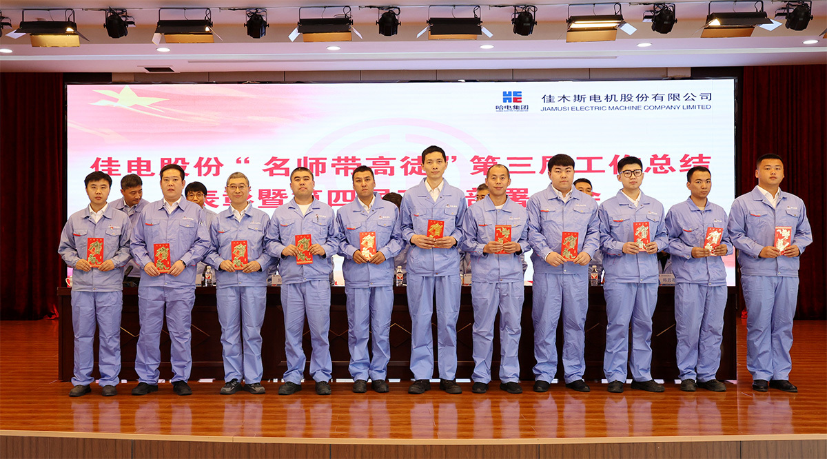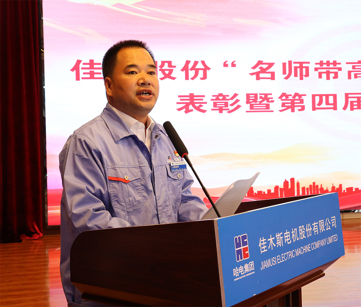 為深入學(xué)習(xí)貫徹黨的二十大和二十屆三中全會(huì)精神,貫徹落實(shí)習(xí)近平總書記關(guān)于產(chǎn)業(yè)工人隊(duì)伍建設(shè)改革的重要指示精神,大力弘揚(yáng)“勞模精神、勞動(dòng)精神、工匠精神”,充分發(fā)揮生產(chǎn)技術(shù)骨干人才的“傳幫帶”作用,9月27日,哈電集團(tuán)佳木斯電機(jī)股份有限公司(以下簡(jiǎn)稱“佳電股份”)召開(kāi)“名師帶高徒”第三屆工作總結(jié)表彰暨第四屆工作部署大會(huì)。佳電股份黨委書記、總經(jīng)理劉漢成出席會(huì)議并講話,佳電股份黨委副書記、工會(huì)主席劉亨主持會(huì)議,佳電股份領(lǐng)導(dǎo)班子成員出席會(huì)議。