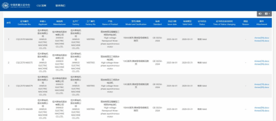 4月1日,中國質(zhì)量認(rèn)證中心(CQC)官方網(wǎng)站更新了中國節(jié)能認(rèn)證證書內(nèi)容,哈電集團(tuán)佳木斯電機(jī)股份有限公司(以下簡稱“佳電股份”)率先通過新版國家標(biāo)準(zhǔn)GB 30254-2024《高壓三相籠型異步電動機(jī)能效限定值及能效等級》高壓電機(jī)系列新1級能效認(rèn)證,成為了全國首家進(jìn)行高壓電機(jī)系列新1級能效產(chǎn)品取證的企業(yè),進(jìn)一步彰顯了佳電股份積極踐行國家“雙碳”戰(zhàn)略的責(zé)任擔(dān)當(dāng),充分體現(xiàn)了企業(yè)在推動工業(yè)設(shè)備綠色發(fā)展方面的領(lǐng)軍地位。在此過程中,中國質(zhì)量認(rèn)證中心(CQC)給予了大力支持并到公司見證了相關(guān)系列產(chǎn)品的認(rèn)證過程。