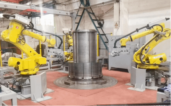 定子鐵心疊裝機器人工作單元,配備2D+3D視覺識別系統(tǒng)以及六軸關(guān)節(jié)機器人等設備,實現(xiàn)了電機定子鐵心的自動疊裝。