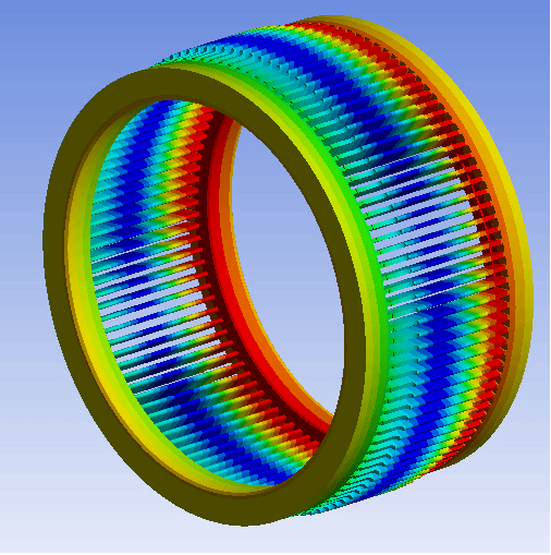 ?通過對(duì)電機(jī)風(fēng)路優(yōu)化設(shè)計(jì)及電機(jī)流場仿真分析,使風(fēng)路在電機(jī)內(nèi)部更加順暢,同時(shí)對(duì)溫度場和流體場耦合分析,通過熱仿真優(yōu)化筋條高度及導(dǎo)風(fēng)板位置,散熱效率提升20%。