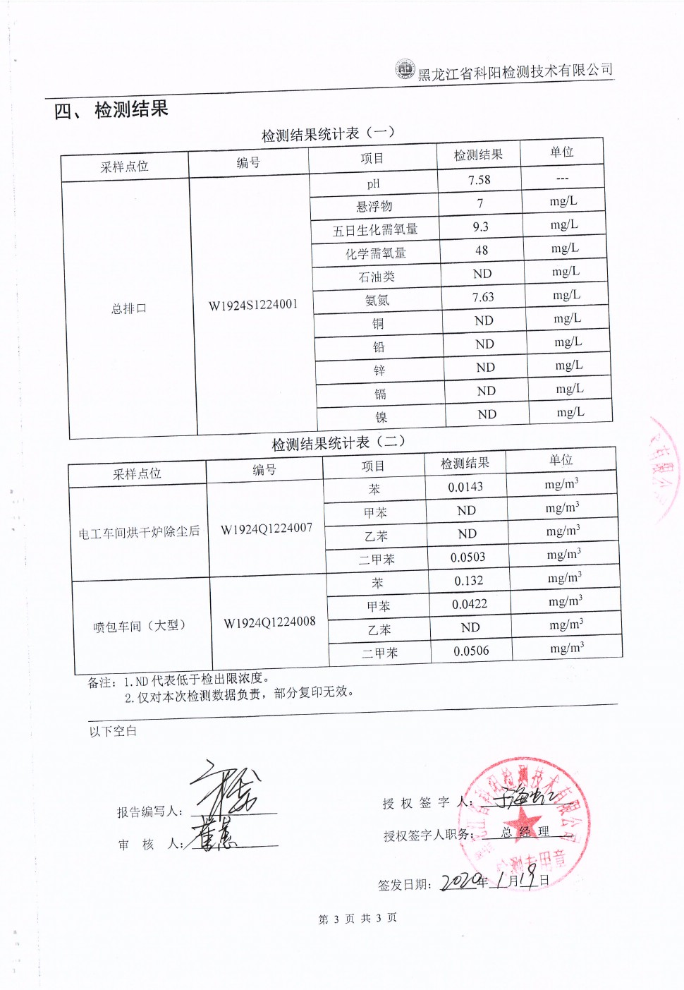 (4)噪聲工廠,噪聲主要來自生產(chǎn)過程中的機械加工設備、環(huán)保處理設施中的風機運行等,依據(jù)黑龍江省科陽檢測技術有限公司出具的2019年工廠廠界噪聲檢測報告,工廠廠界噪音滿足GB 12348-2008《工業(yè)企業(yè)廠界環(huán)境噪聲排放標準》1類標準(晝:60dB(A),夜:55dB(A)。